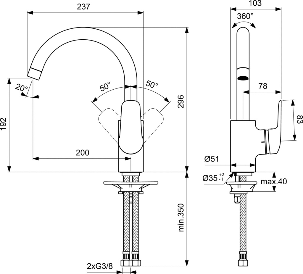 Porcher Mitigeur évier bec haut Okyris col de cygne, chromé (D0580AA)