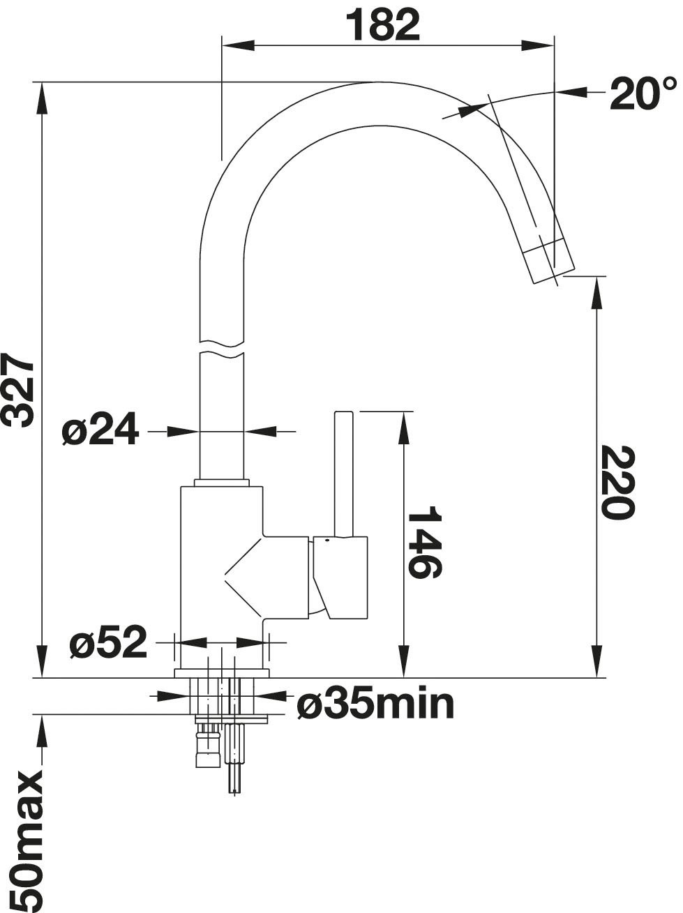 Caractéristiques du mitigeur Blanco Mida à col de cygne (517742) :