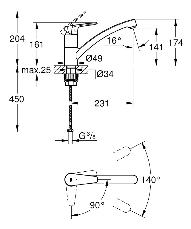 Grohe Mitigeur monocommande évier, chrome (MitigeurC3)