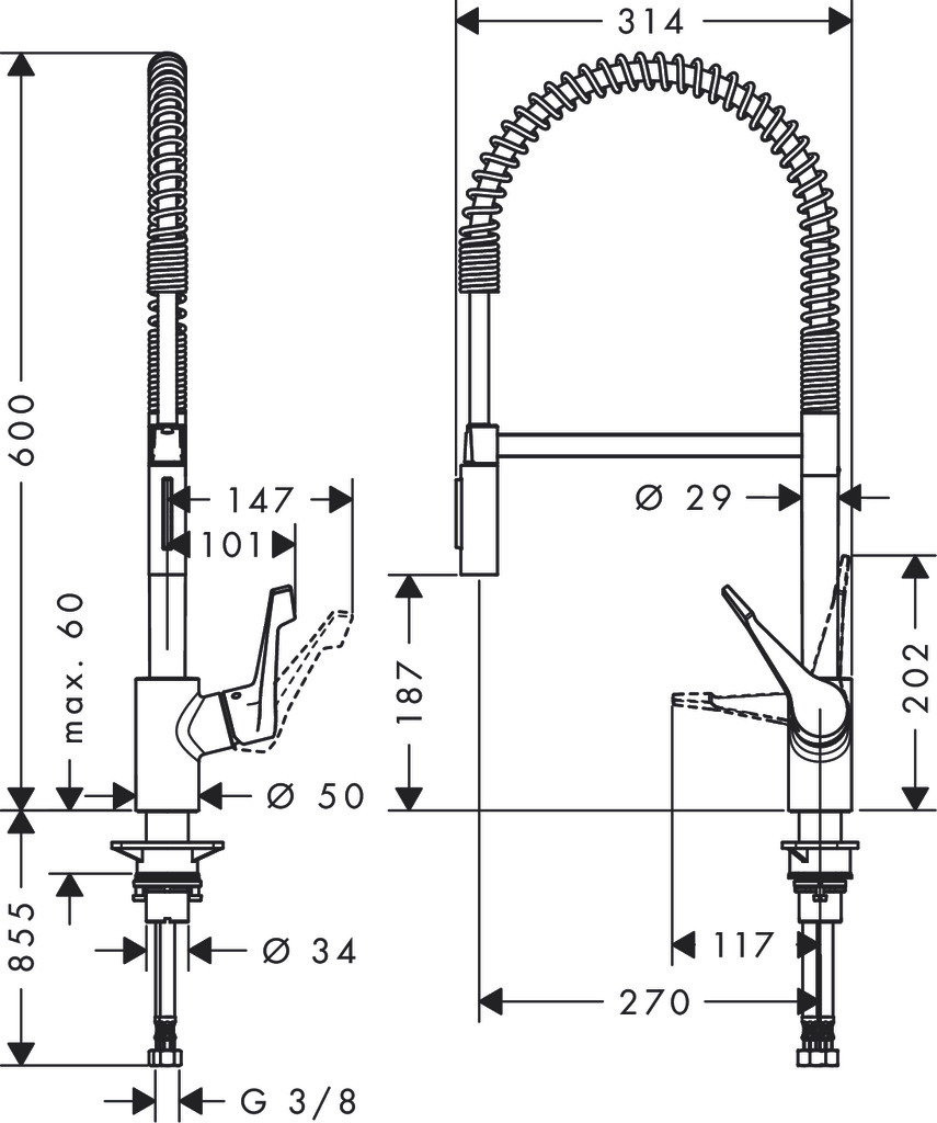 Caractéristiques du mitigeur de cuisine XXL, Semi-pro 2 jets Hansgrohe Cento :