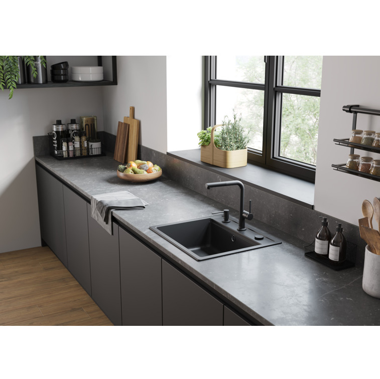 Caractéristiques du Mitigeur de cuisine 270, avec douchette extractible 1 jet, Noir mat (72808670) :