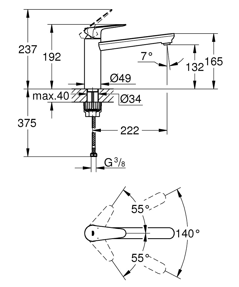 Caractéristiques du mitigeur évier avec bec mobile, Chrome Grohe Start Curve (31717000) :