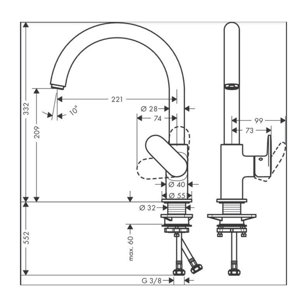 • Comprenant: mitigeur de cuisine, raccordement flexibles, set de fixation, instruction de montage