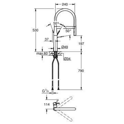 - Avec flexible hygiénique en santoprene GROHFlexx kitchen