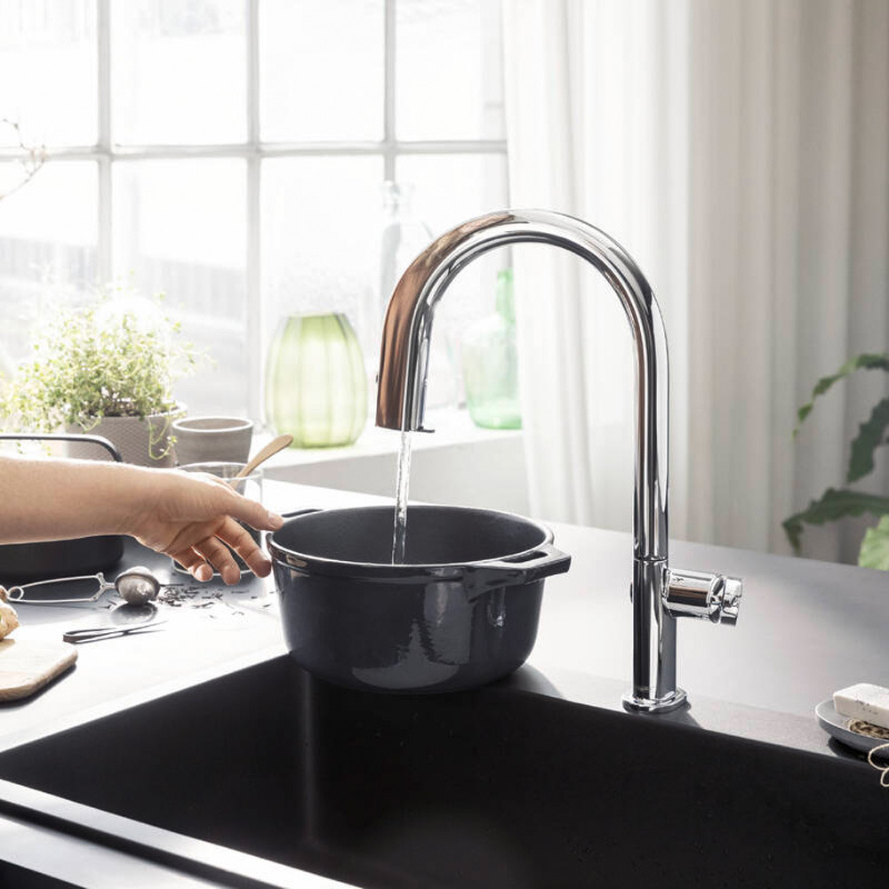 - Comprenant: mitigeur de cuisine, matériel de montage, raccordement flexibles, instruction de montage