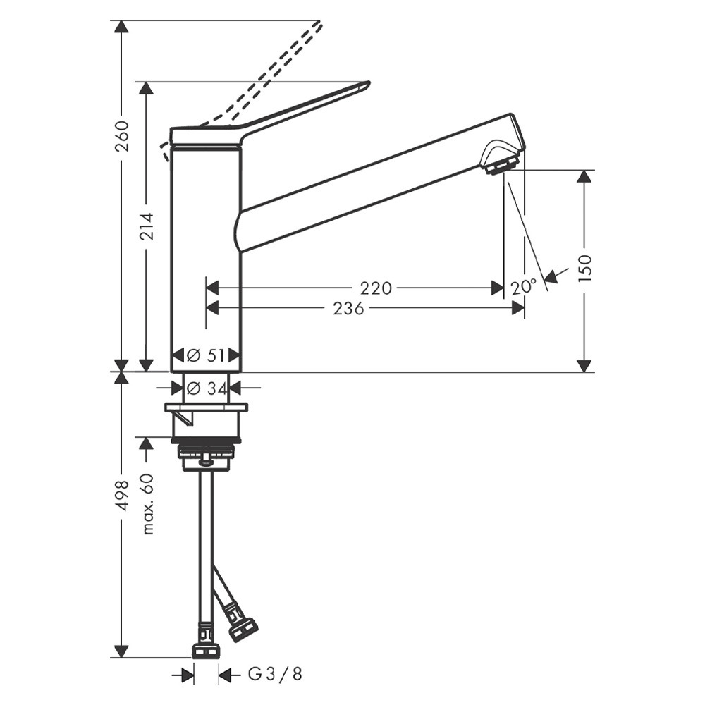 • comprenant: mitigeur de cuisine, raccordement flexibles, set de fixation, instruction de montage