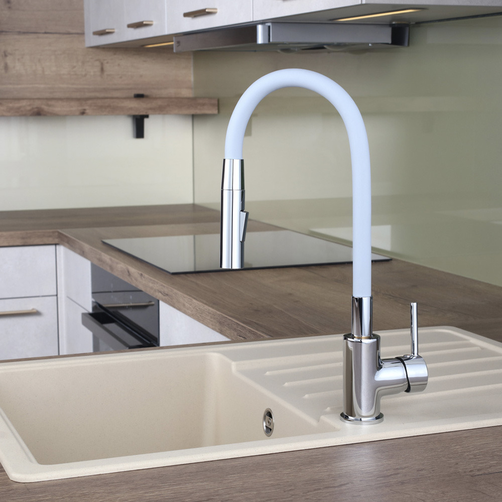Le robinet d'évier avec un bras flexible en silicone est une aide pratique pour chaque cuisine.