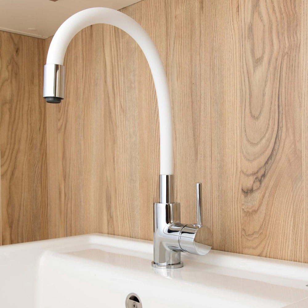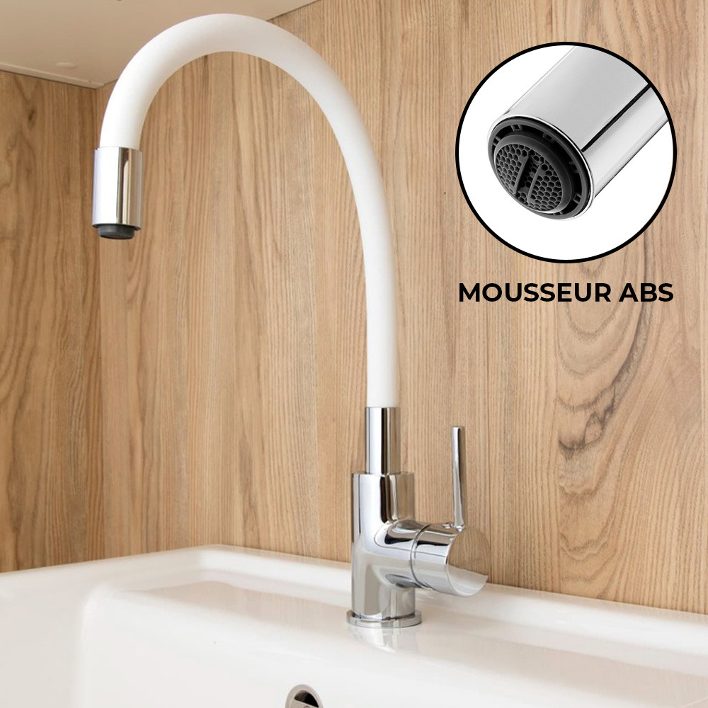 Siko Mitigeur cuisine à mémoire de forme, courbe en silicone blanc (SIKOBSLPRO290b)