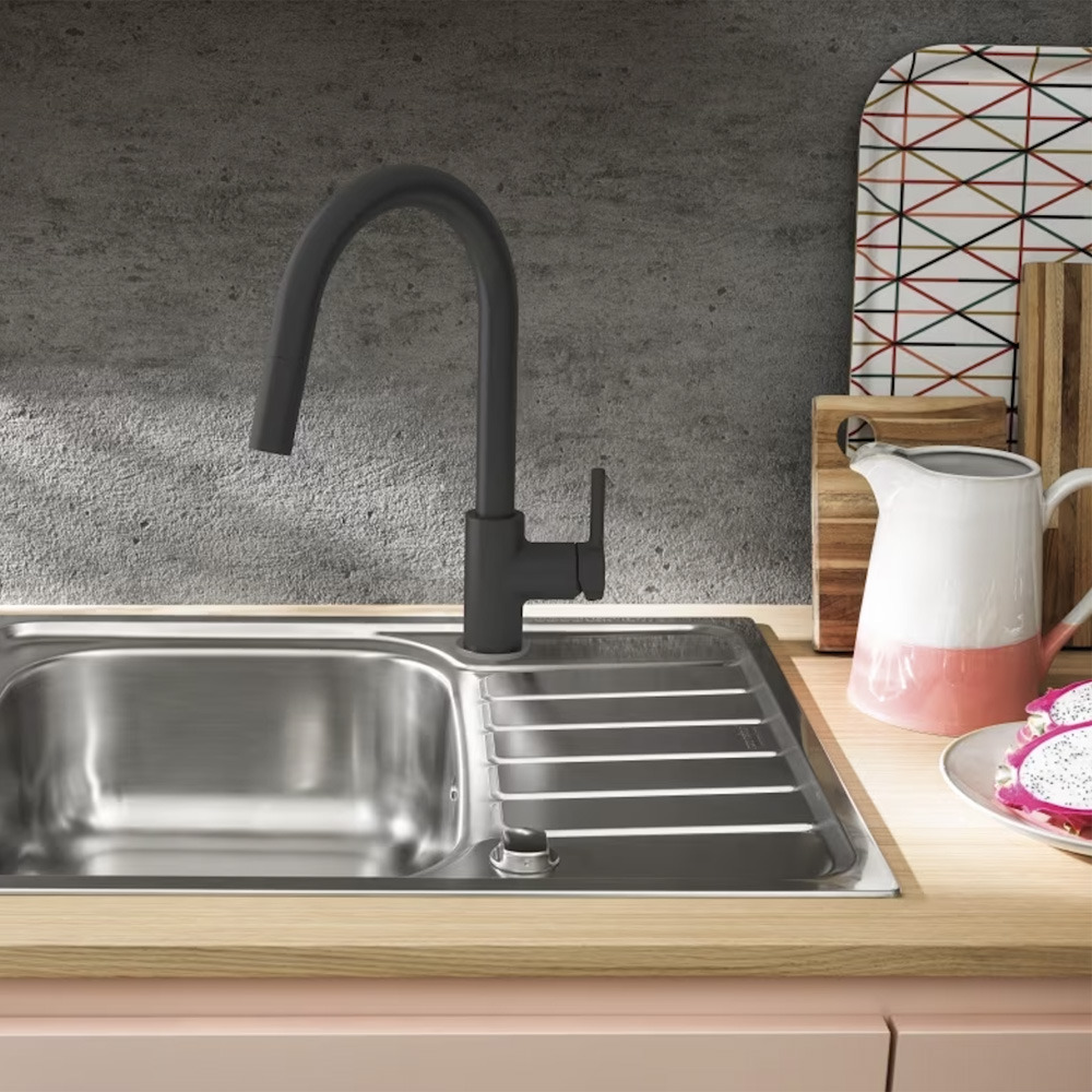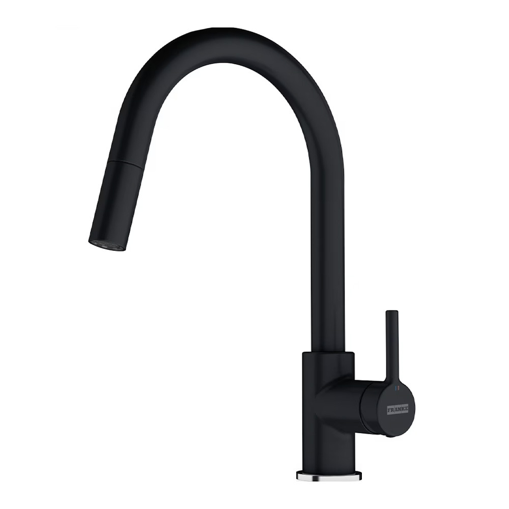 Franke Lina - Mitigeur de cuisine 215x360mm, Douchette extractible, Rotation du bec  150°, noir Onyx (115.0626.055)