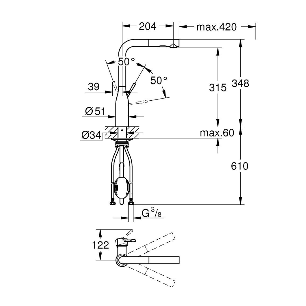 - Type de bec:Tubulaire pivotant