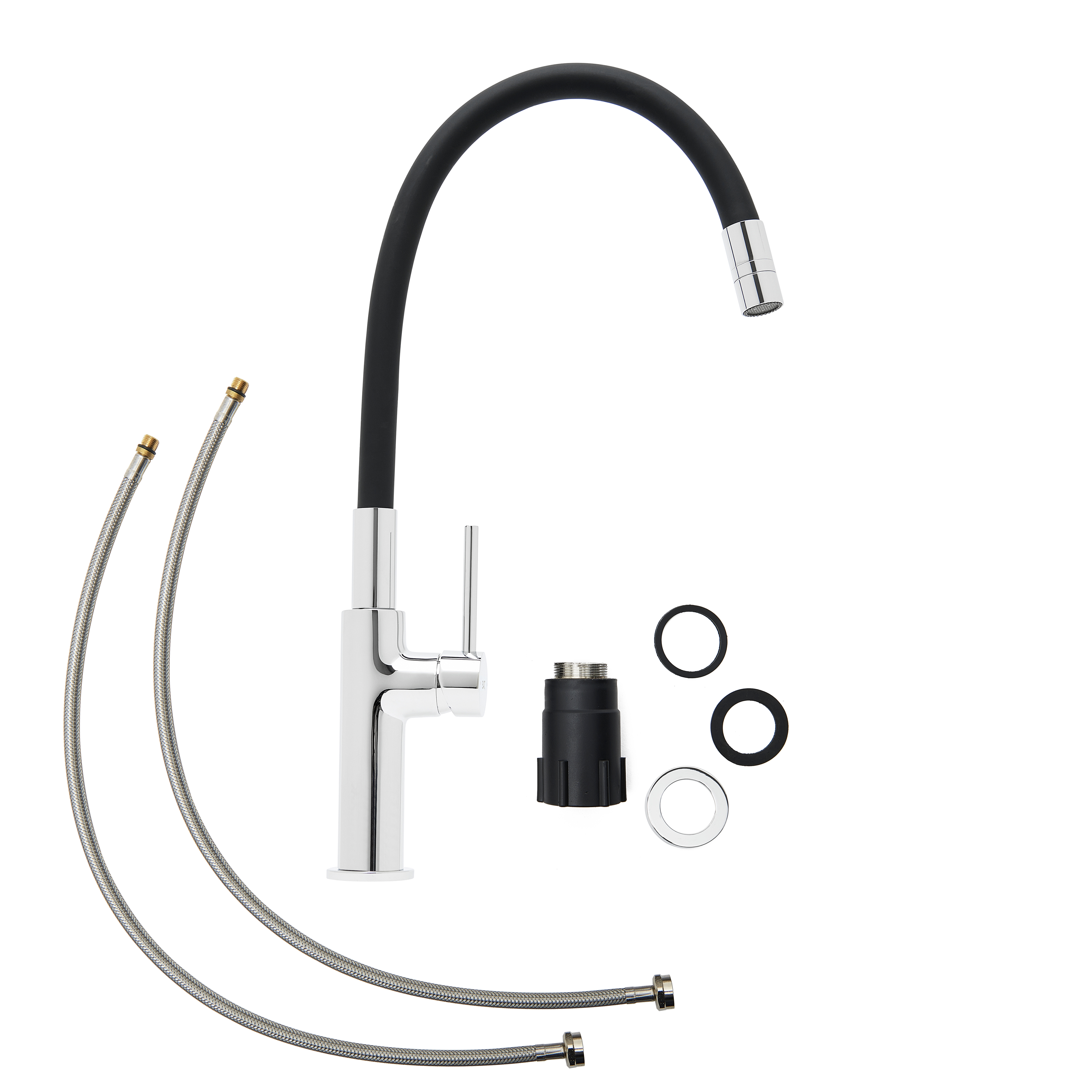 Mitigeur pour évier de cuisine avec bec flexible en silicone, aérateur Neoperl®, cartouche en céramique, noir (SATBSD290C)