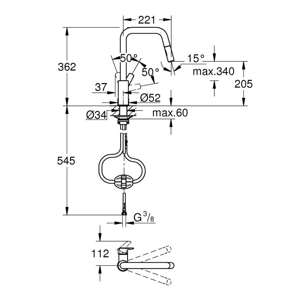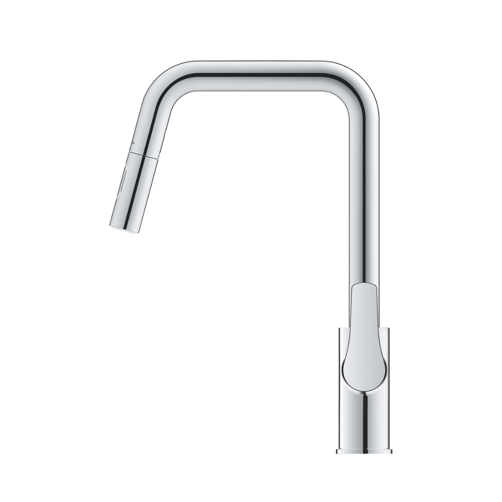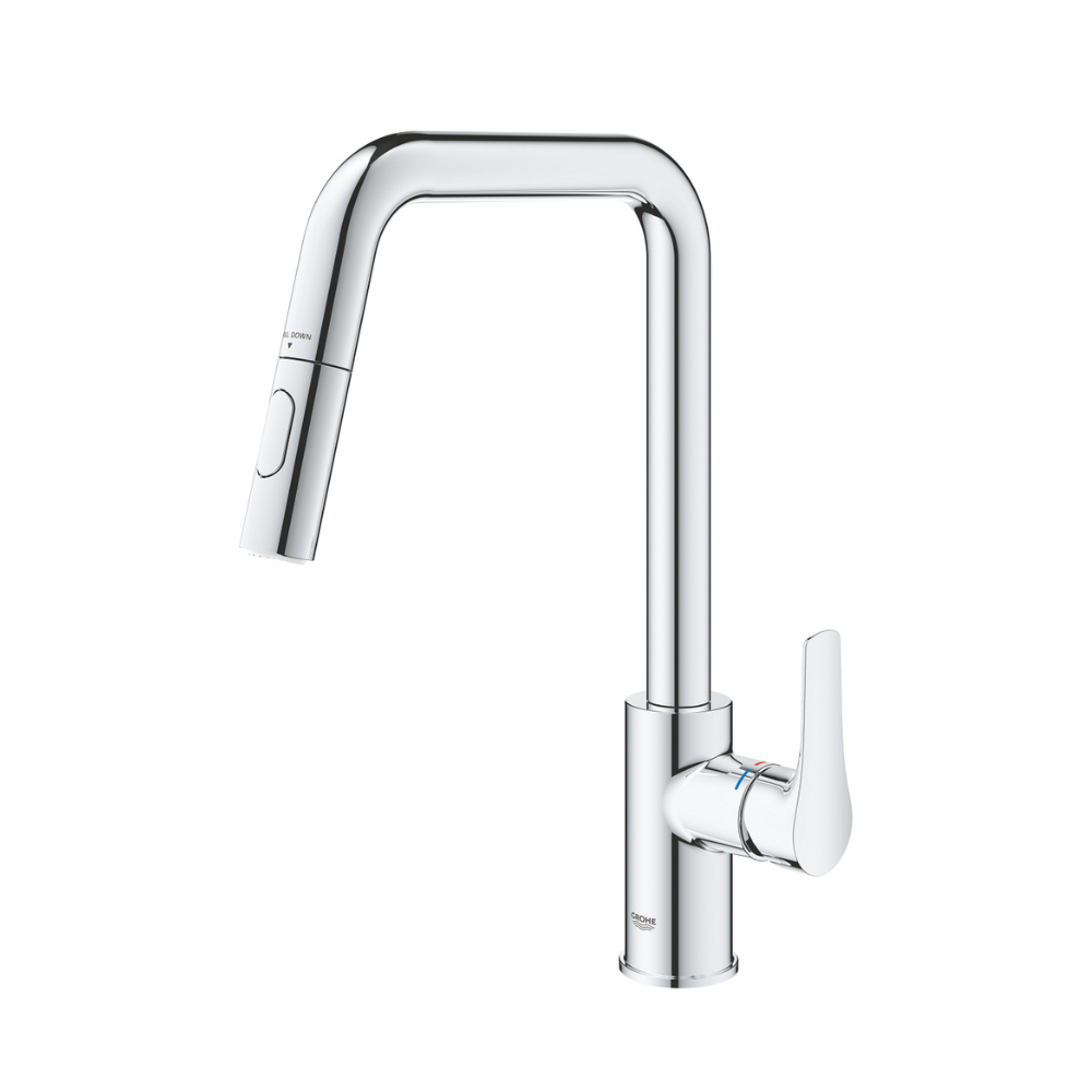 Grohe Eurosmart Mitigeur monocommande pour évier 1/2″, douchette extractible 2 jets, bec haut, chrome (G3061900F)