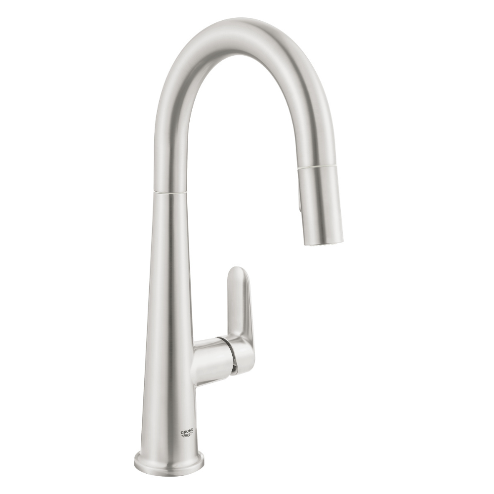 Caractéristiques du robinet d’évier à levier unique, inox Grohe Veletto (G30419DC0) :