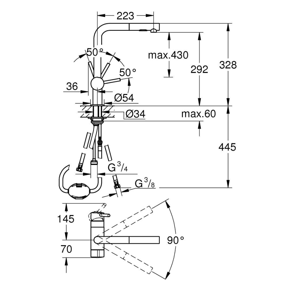 - Angle de pivotement de 90°