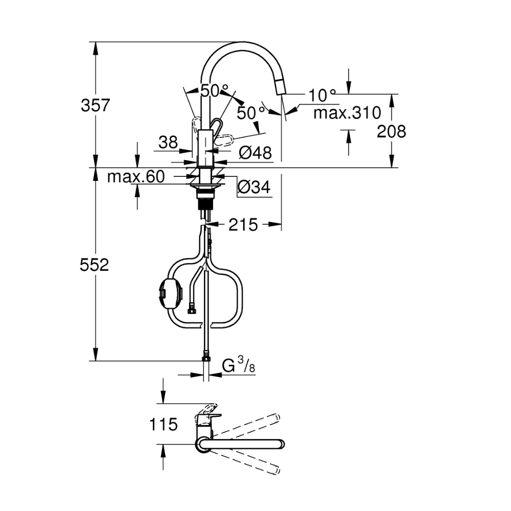 Caractéristiques du mitigeur monocommande évier, chrome Grohe Start Flow (G30569000) :