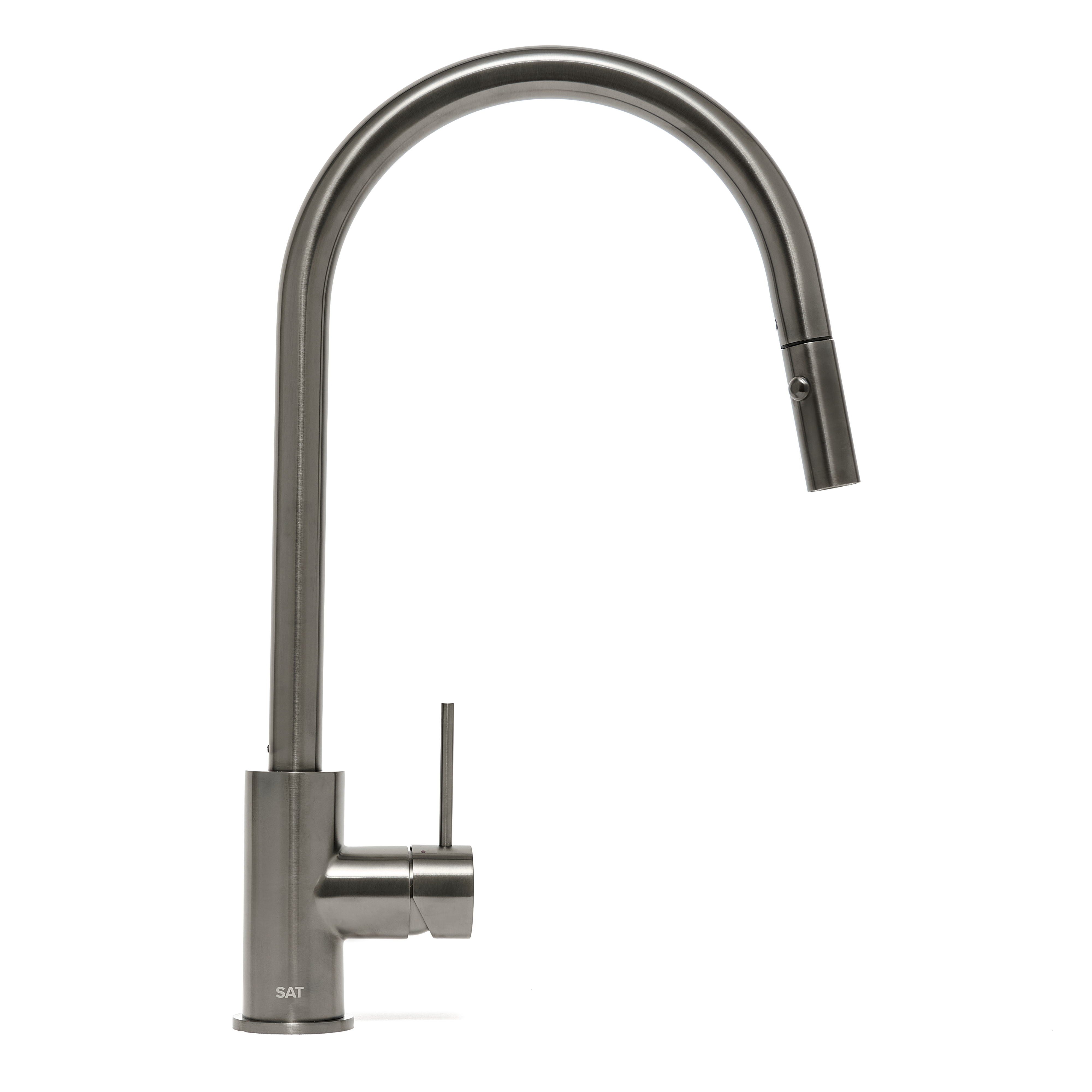 Caractéristiques du mitigeur évier à levier sur pied 44 cm avec douchette extractible 2 jets, Swiss Aqua Technologies (SAT) Aurum, métal brossé (SATBAUR286BGM) :