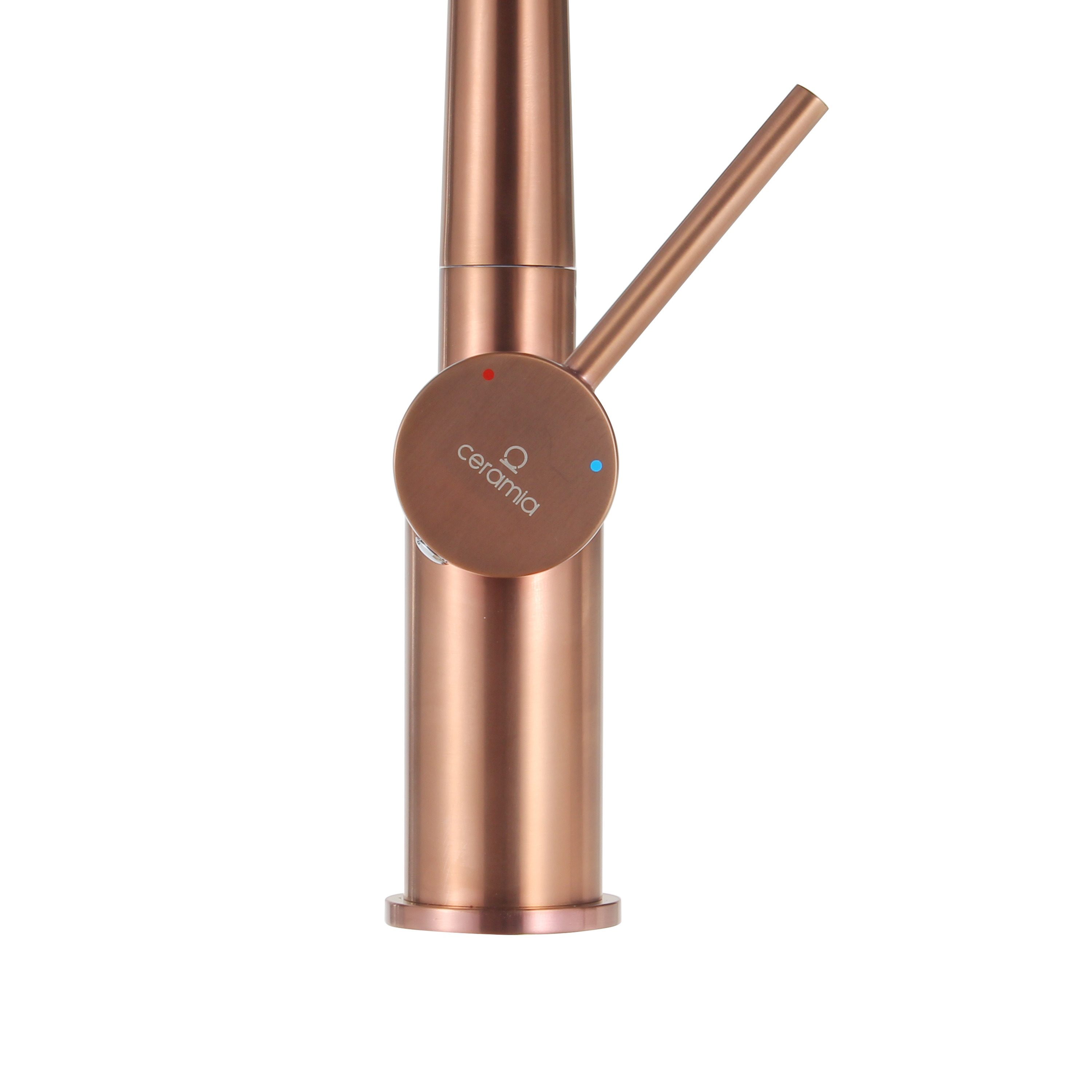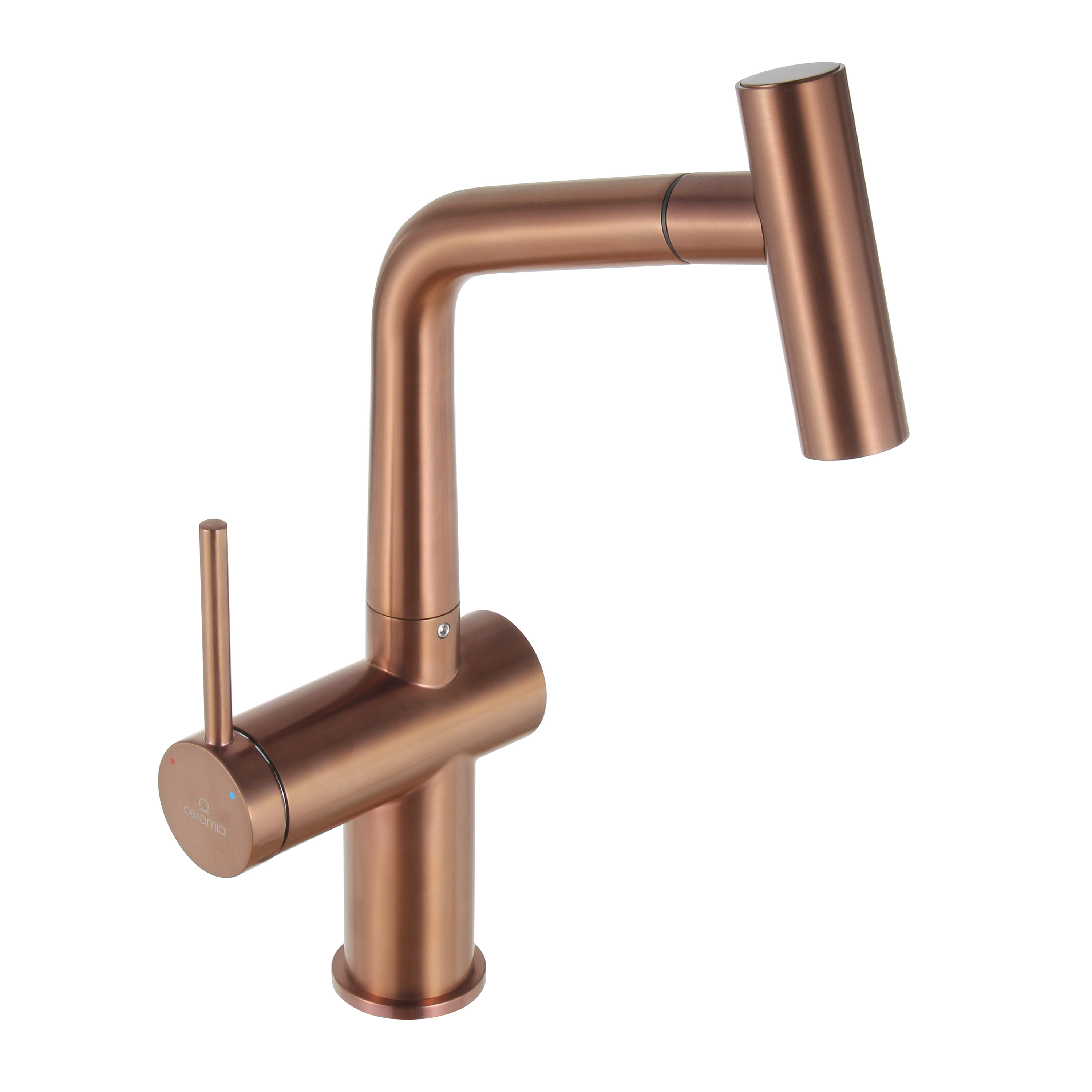 Caractéristiques du mitigeur d'évier à levier en acier inoxydable avec bec extractible, monotrou, Ceramia Timeless, or Cuivre brossé (TMLKF185BCP) :