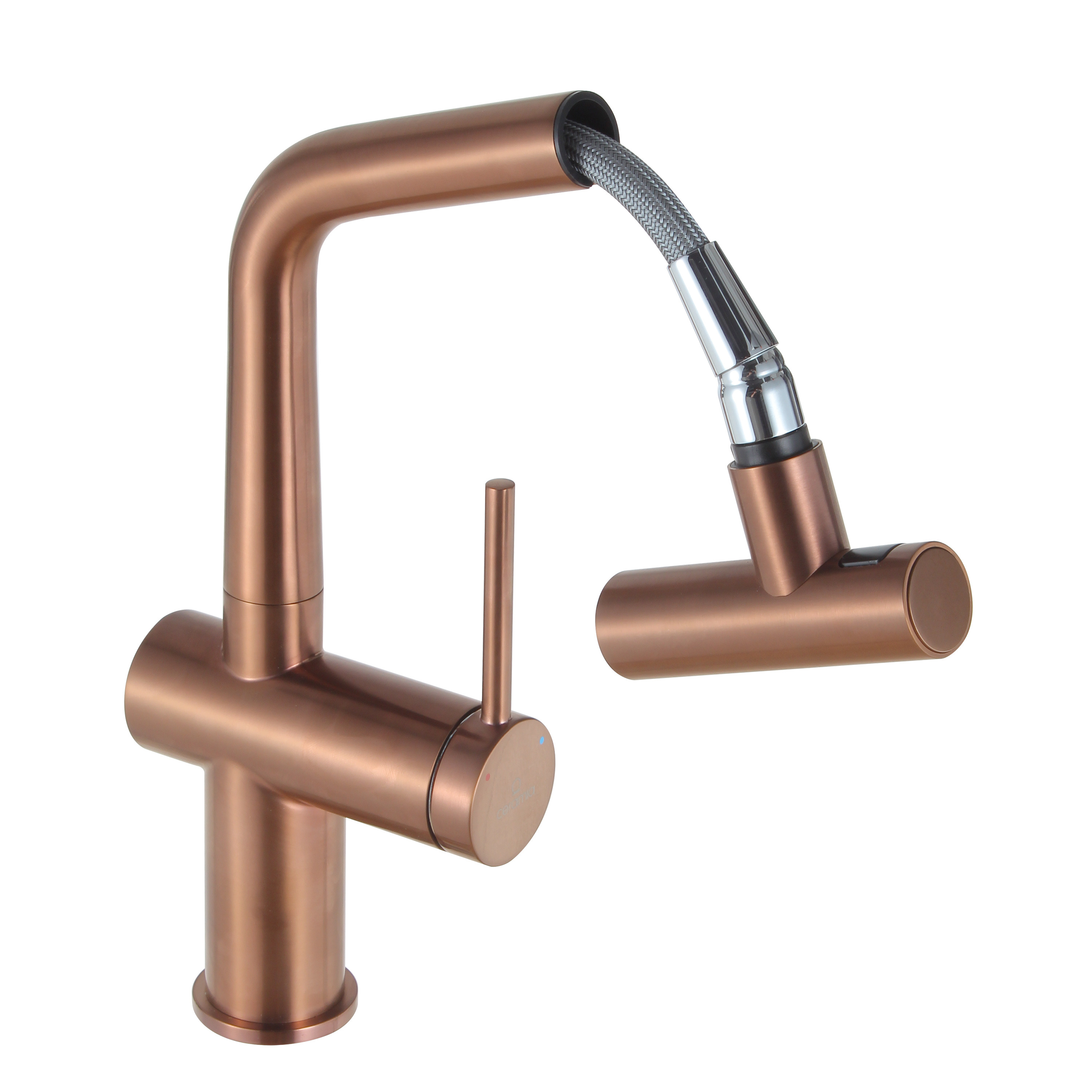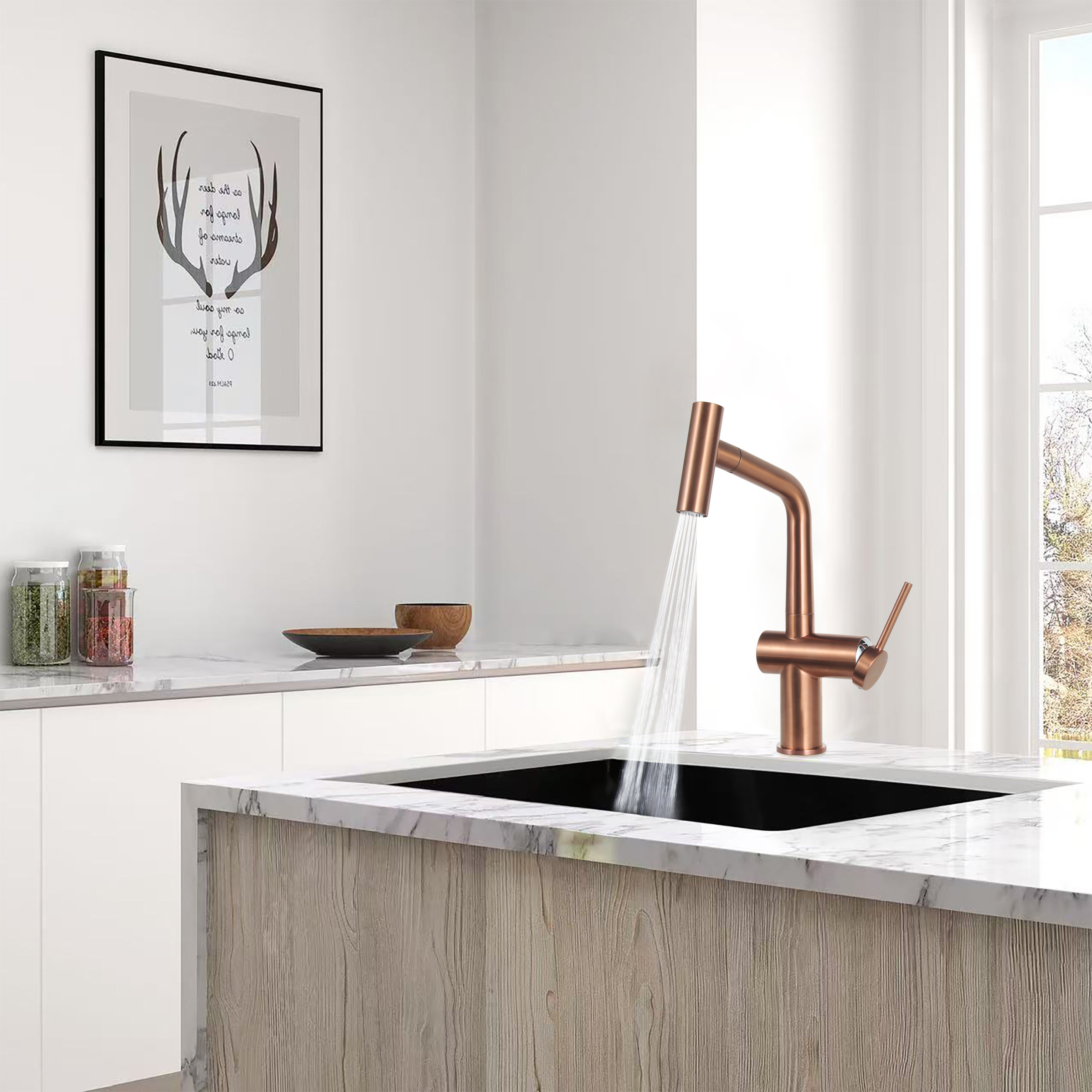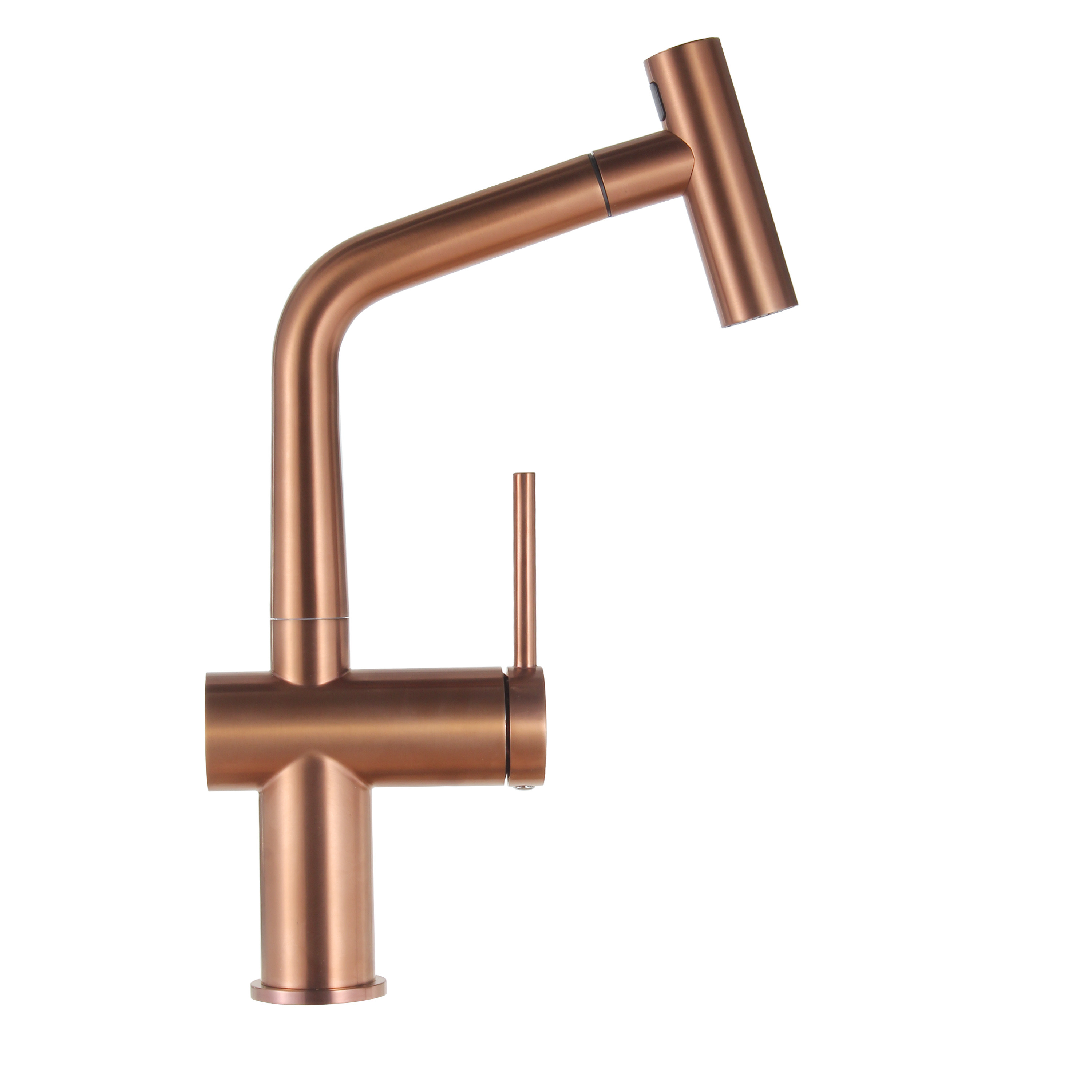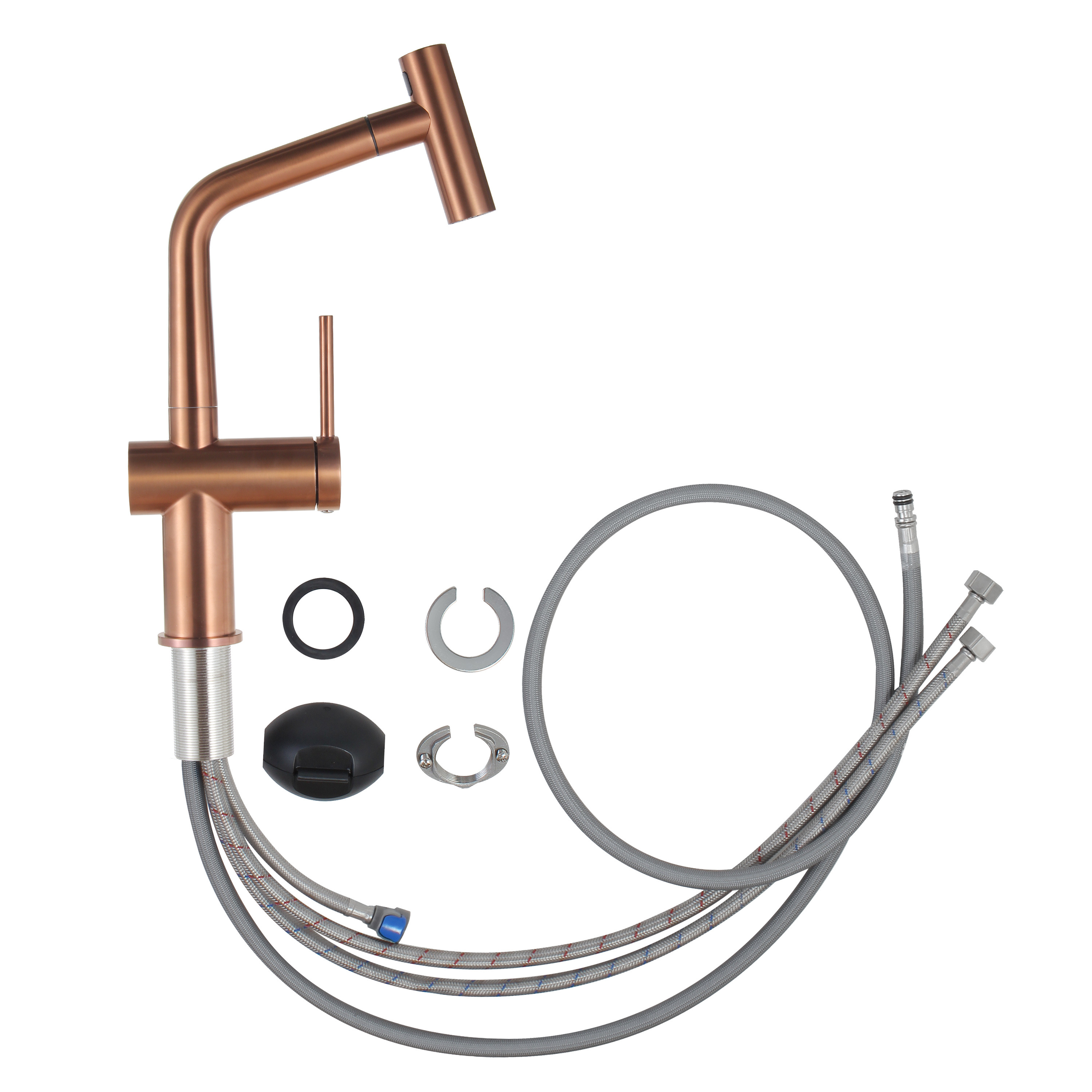 Timeless mitigeur d'évier à levier en acier inoxydable avec douchette extractible, monotrou, or Cuivre brossé (TMLKF185BCP)