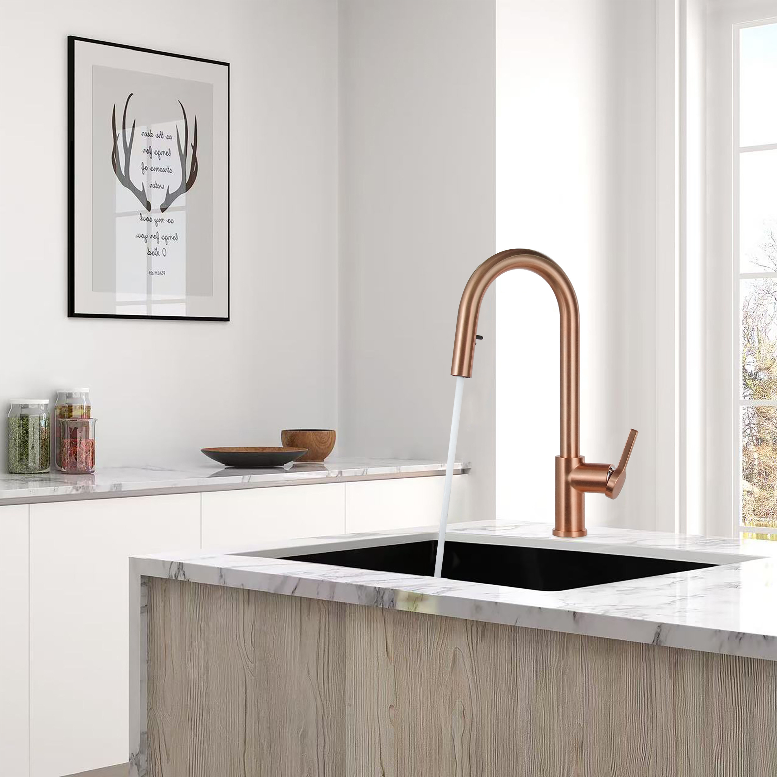 Timeless mitigeur d'évier à levier en acier inoxydable avec douchette extractible, monotrou, or rose brossé TML (TMLKF285BCP)