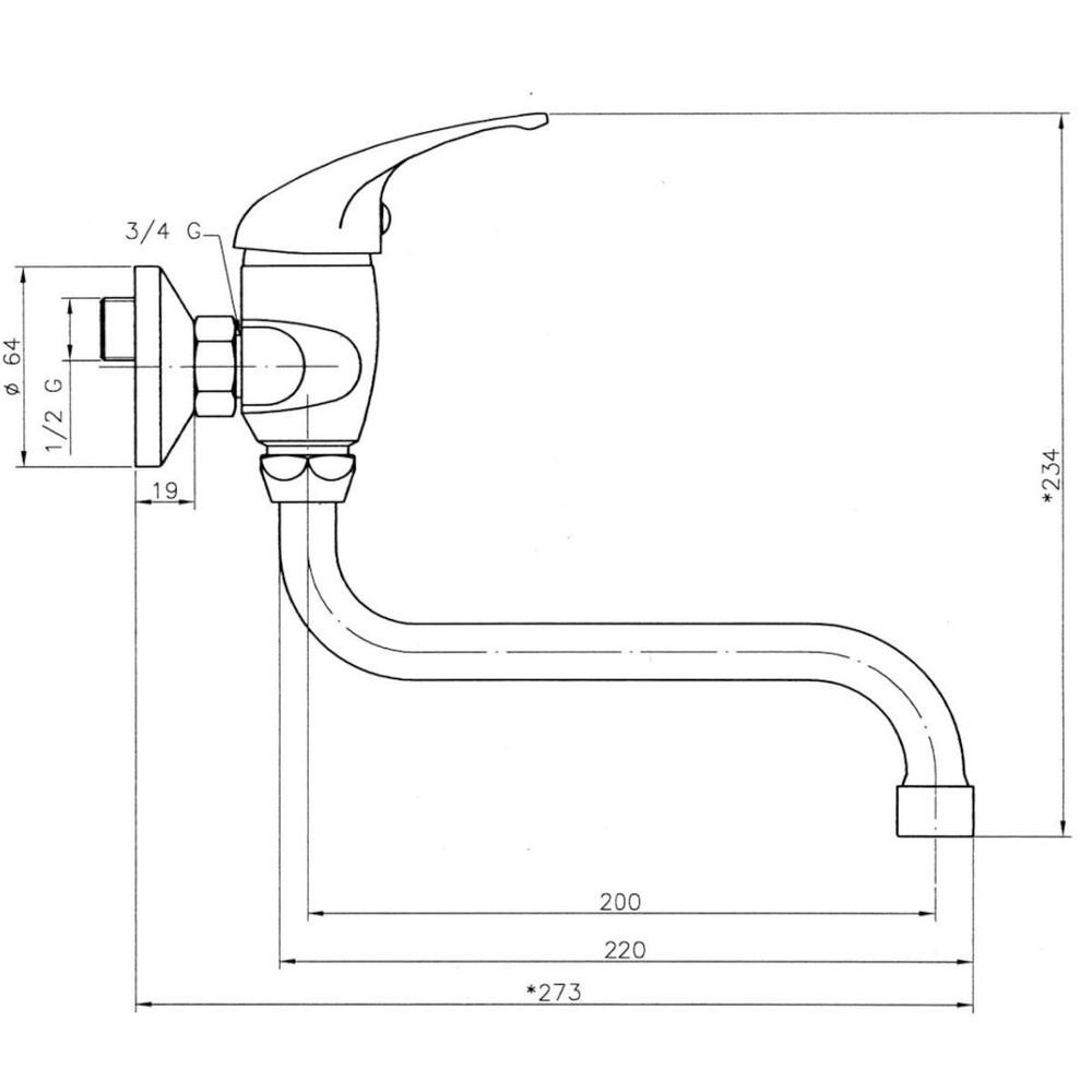 Type : mitigeur d’évier mural à levier unique.