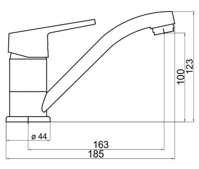 Robinet de cuisine à levier avec bras tournant. En VOVO. La hauteur du mitigeur est de 12,6 cm.