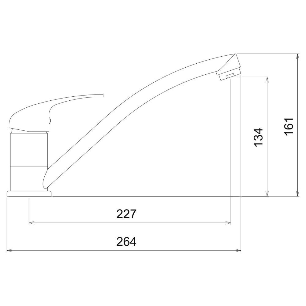 Robinet de cuisine à levier avec bras tournant. Design rond. En finition chromée. La hauteur du bras est de 13,4 cm.