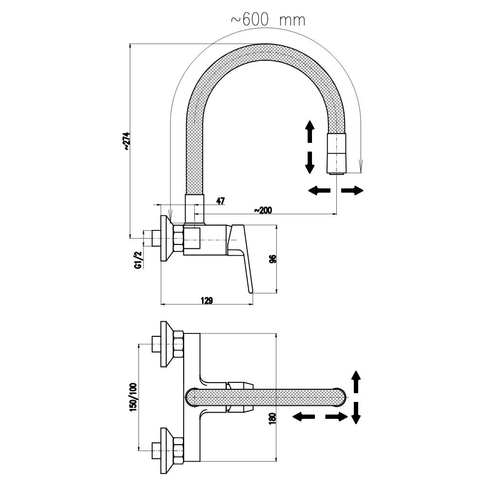 - Entraxe: 150 mm