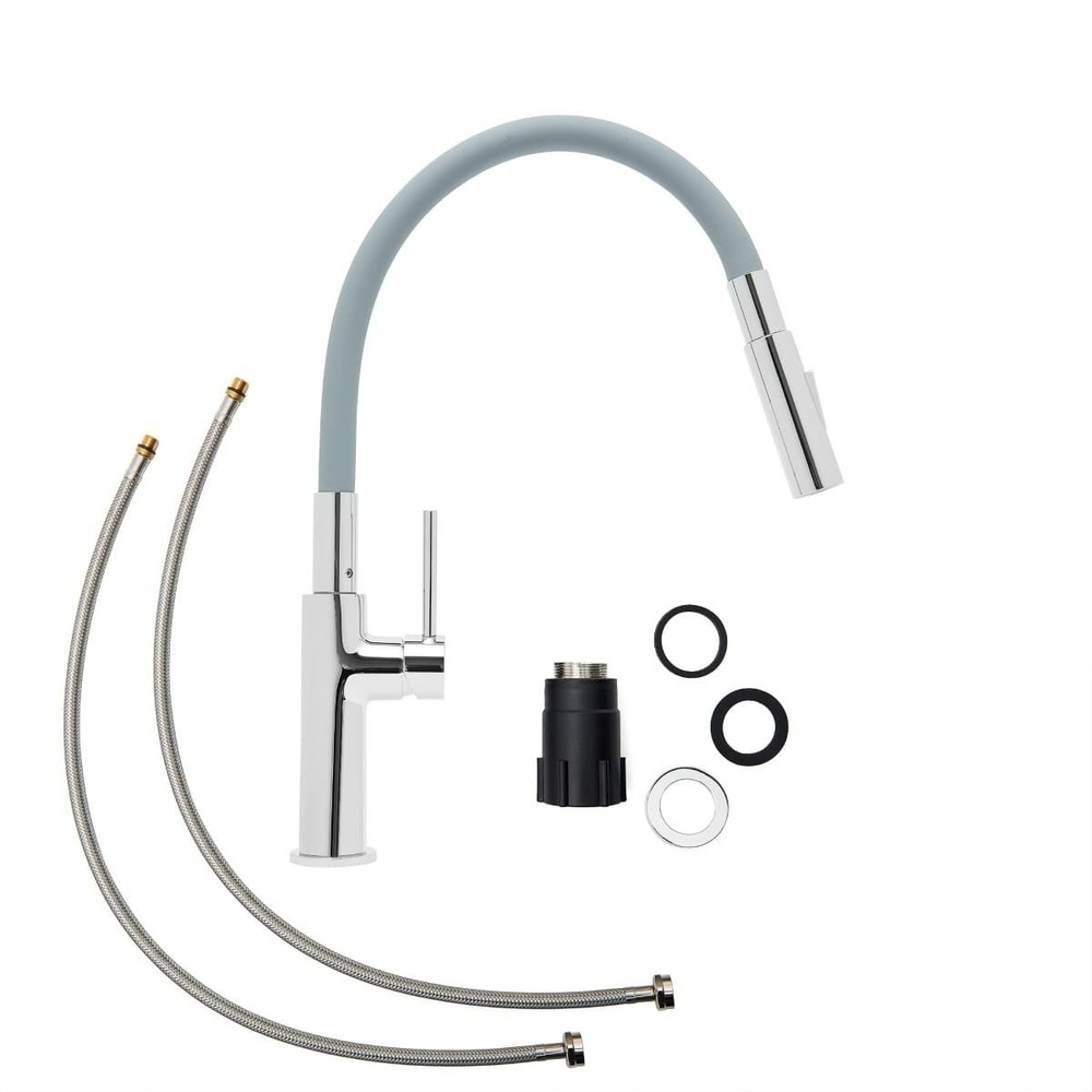 Robinet de cuisine d'évier avec bras en Silicone, en gris/chrome.