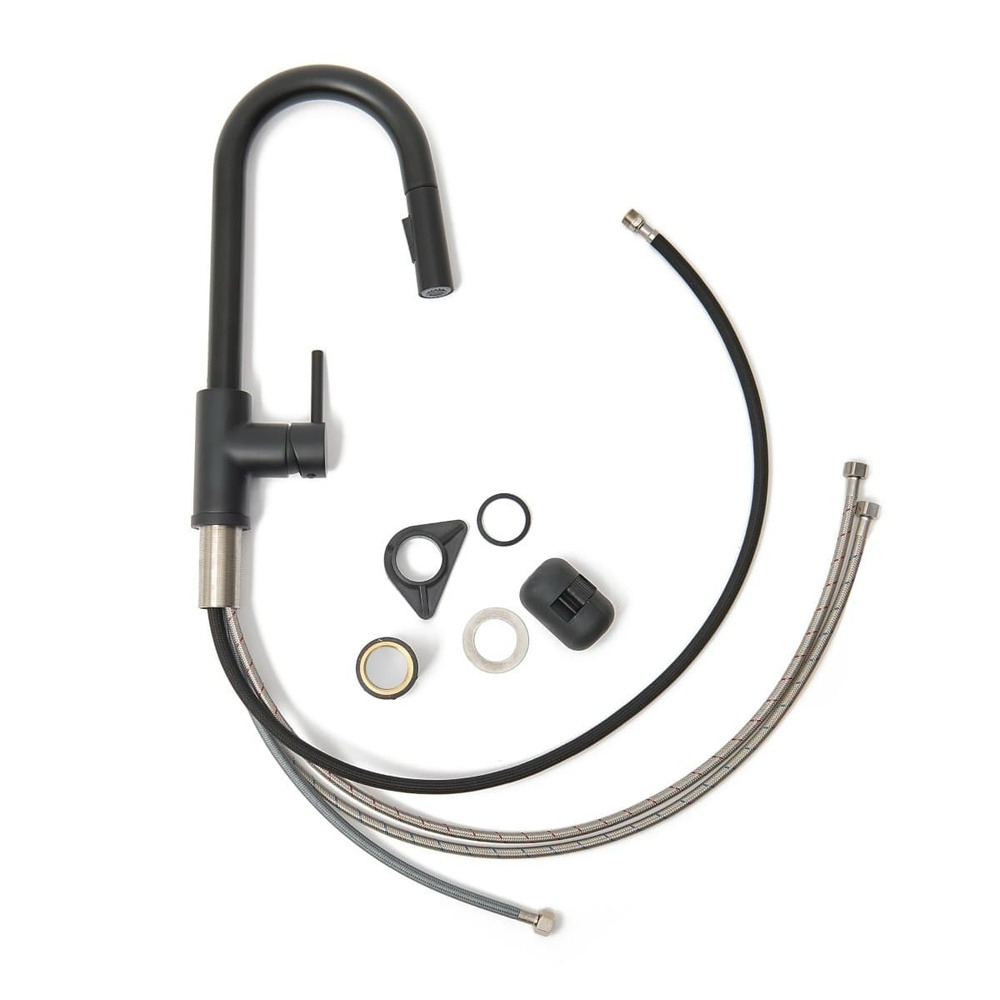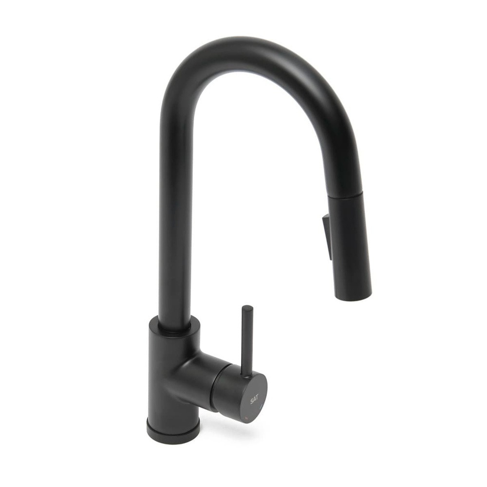 Robinet d'évier de cuisine avec bras articulé en Noir mat. Avec SAT.