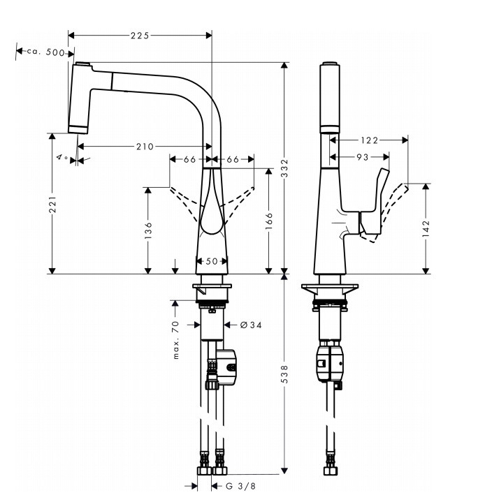 Hansgrohe Metris 220. Mitigeur de cuisine avec douchette extractible, chromé (14834000)
