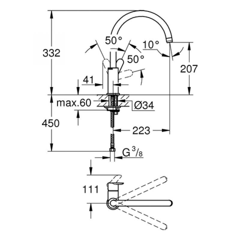 Caractéristiques du mitigeur monocommande Grohe (MitigeurC5) :