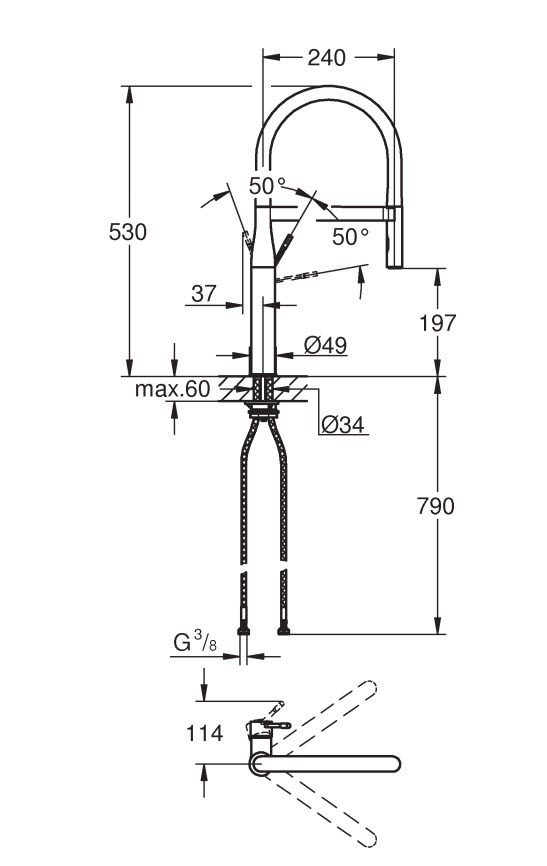 • Avec flexible hygiénique en santoprene GROHFlexx kitchen