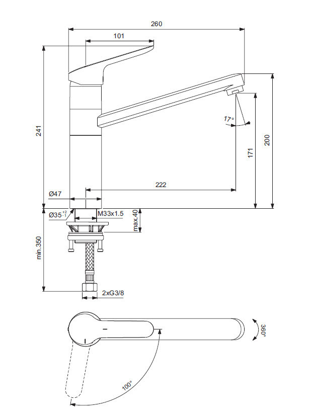 Ideal Standard Mitgeur d'évier, haut débit, chrome (BC135AA)