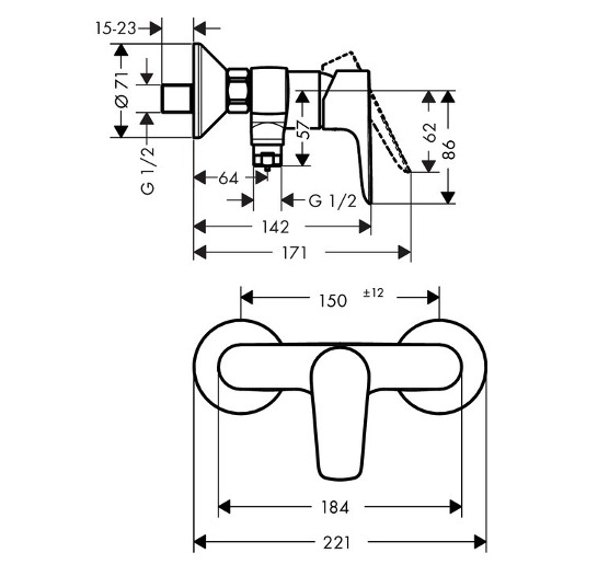 • entraxe: 150 mm ± 12 mm