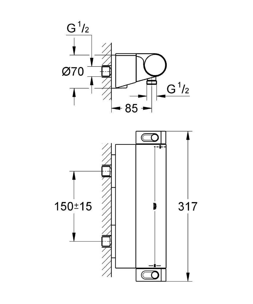 Caractéristiques du Mitigeur thermostatique douche Grohe Grohtherm 2000 1/2" :