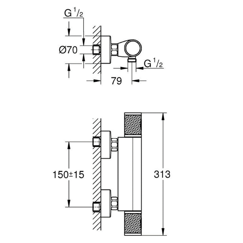 Caractéristiques du GROHTHERM 1000 PERFORMANCE MITIGEUR THERMOSTATIQUE DOUCHE 1/2″ , Chrome (34827000):