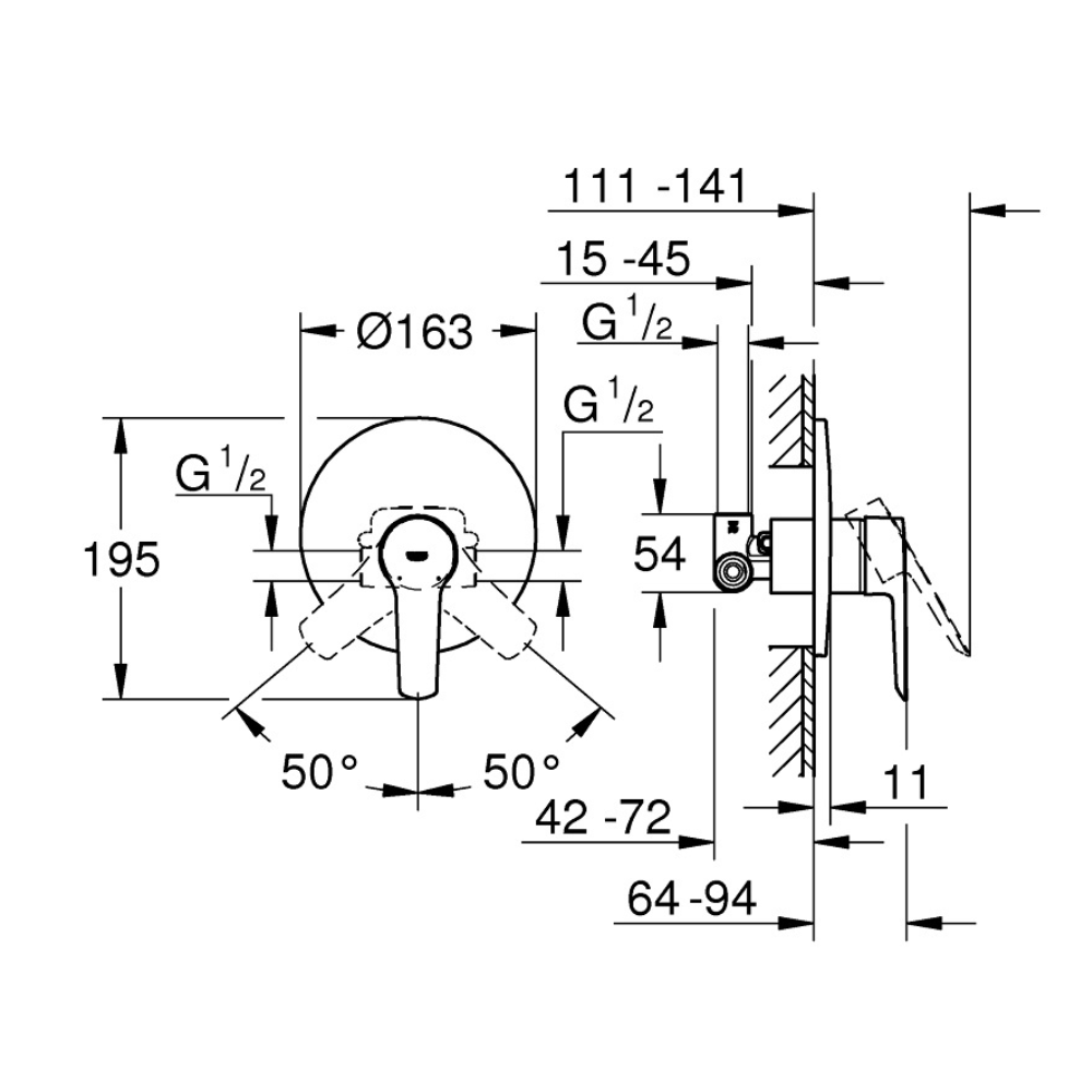 Caractéristiques du mitigeur de douche, 1/2" , chrome Grohe Start (G32590002) :
