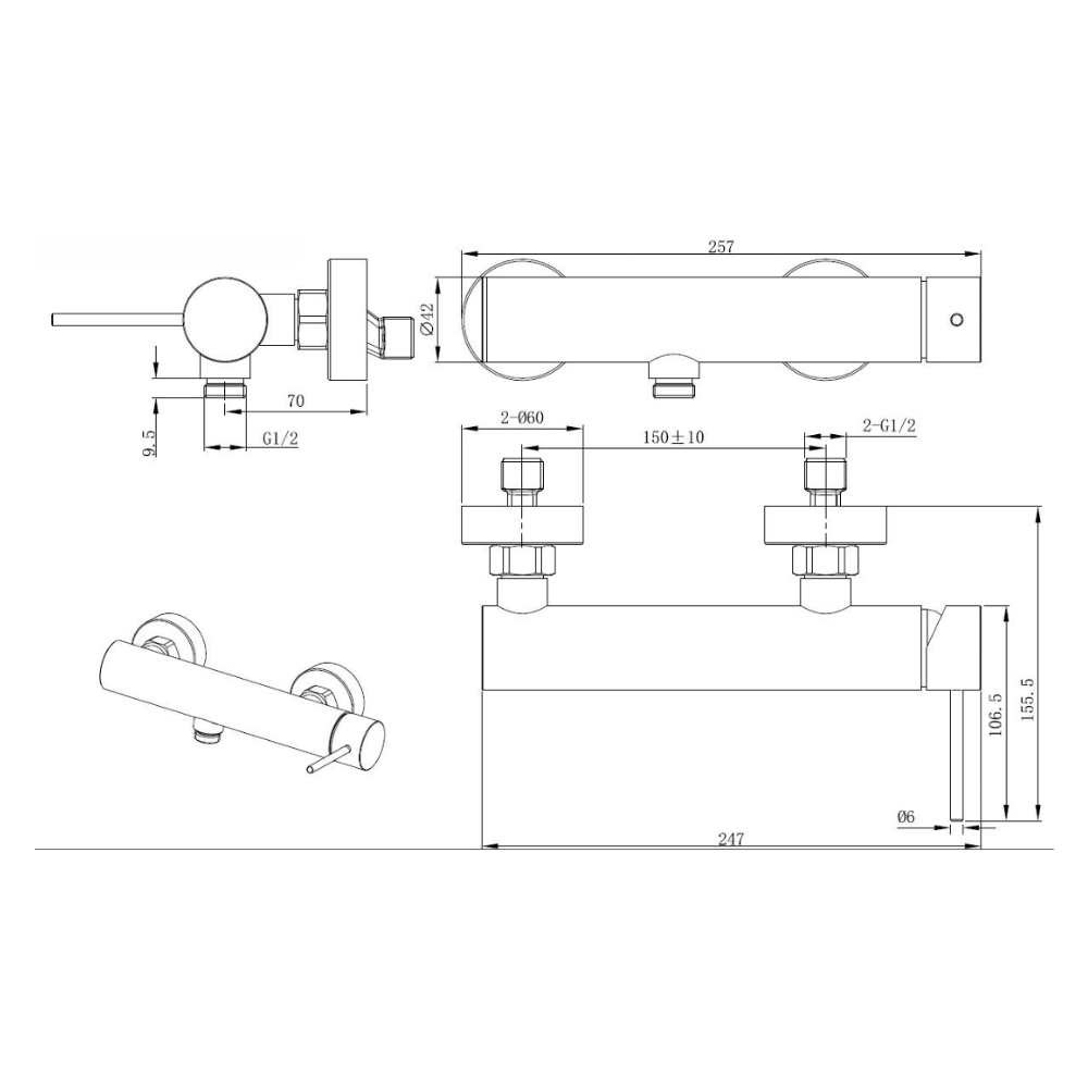 Caractéristiques du mitigeur de douche mural 150 mm à levier sans set de douche, Swiss Aqua Technologies (SAT) Aurum, noir mat (SATBAUR268C) :