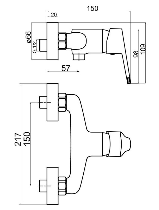Mitigeur de douche mural à levier sans ensemble de douche. En VOVO. Espacement du mitigeur 150 Mp.