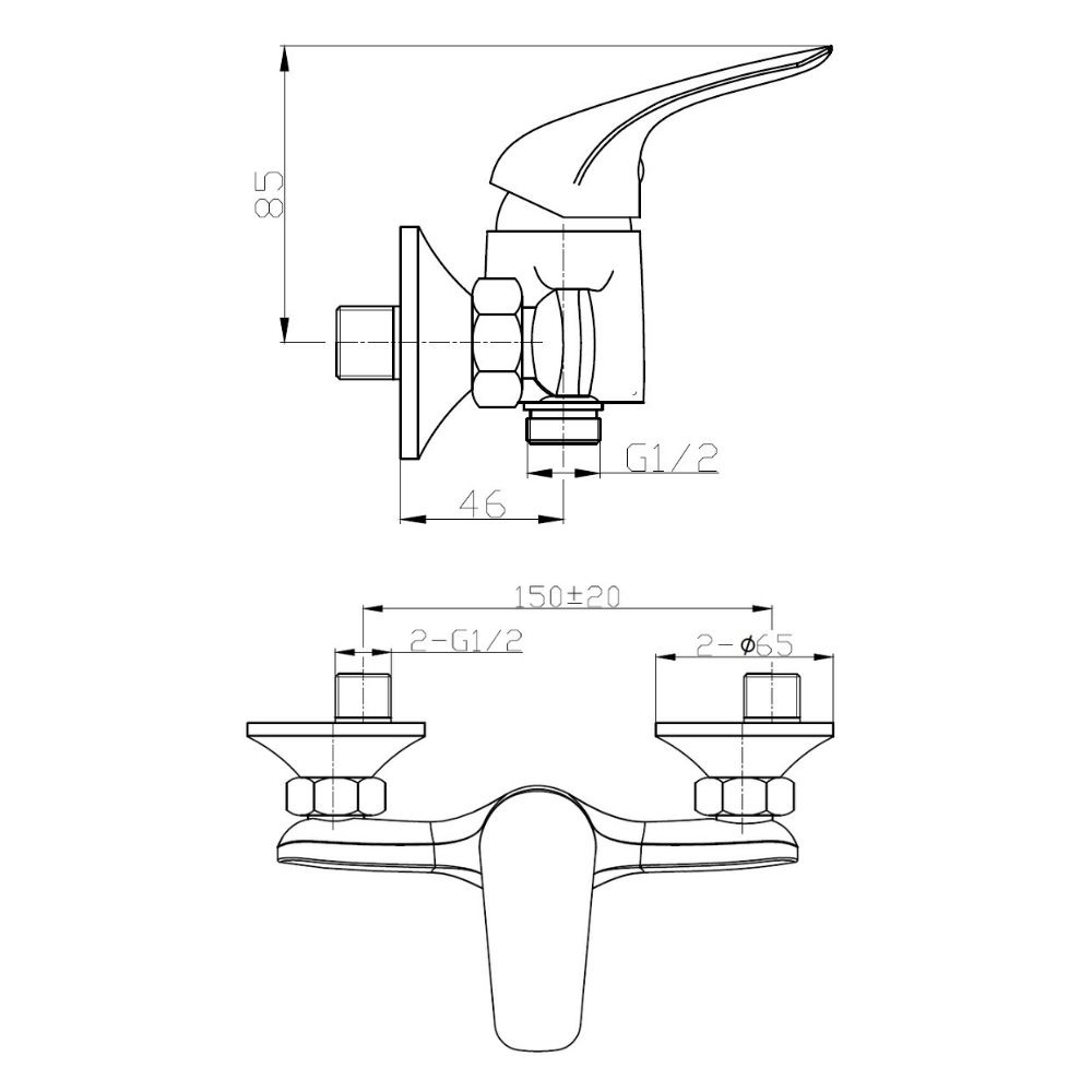 Mitigeur de douche mural à levier SIKO sans ensemble de douche. Design rond. En finition chromée. Le débit du mitigeur est de 15,8 litres/minute. Pas du robinet 150 Mp.