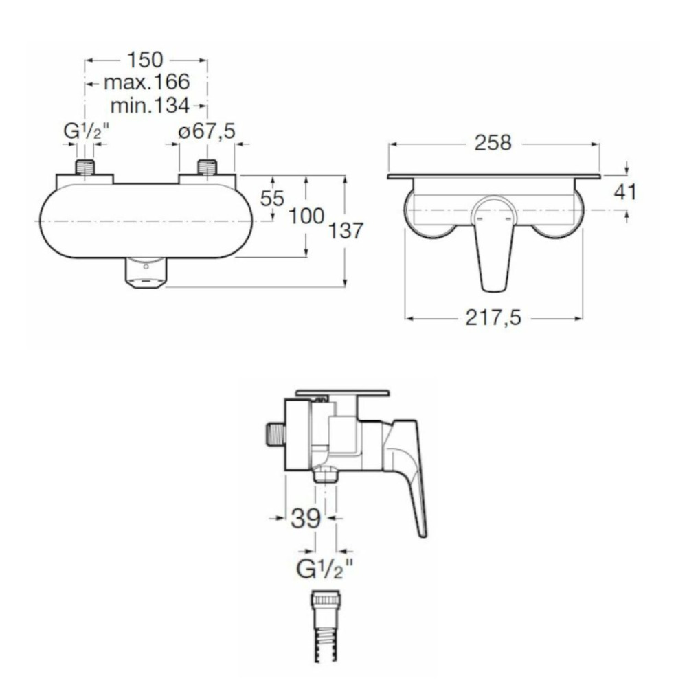 Caractéristiques du mitigeur de douche mural à levier 150 mm, sans ensemble de douche, Roca Atlas, chrome (A5A2190C00) :