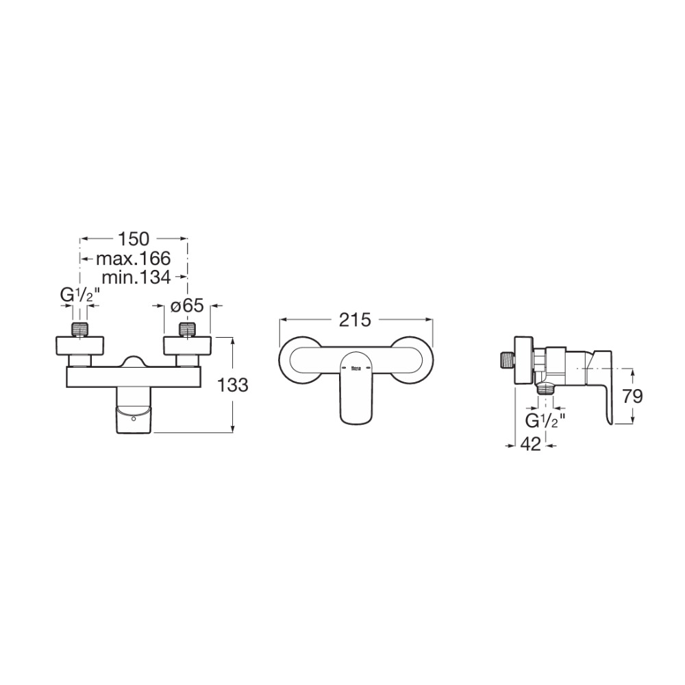 Caractéristiques du mitigeur de douche mural 150 mm à levier, sans ensemble de douche, Roca Cala, chrome (A5A216EC00) :