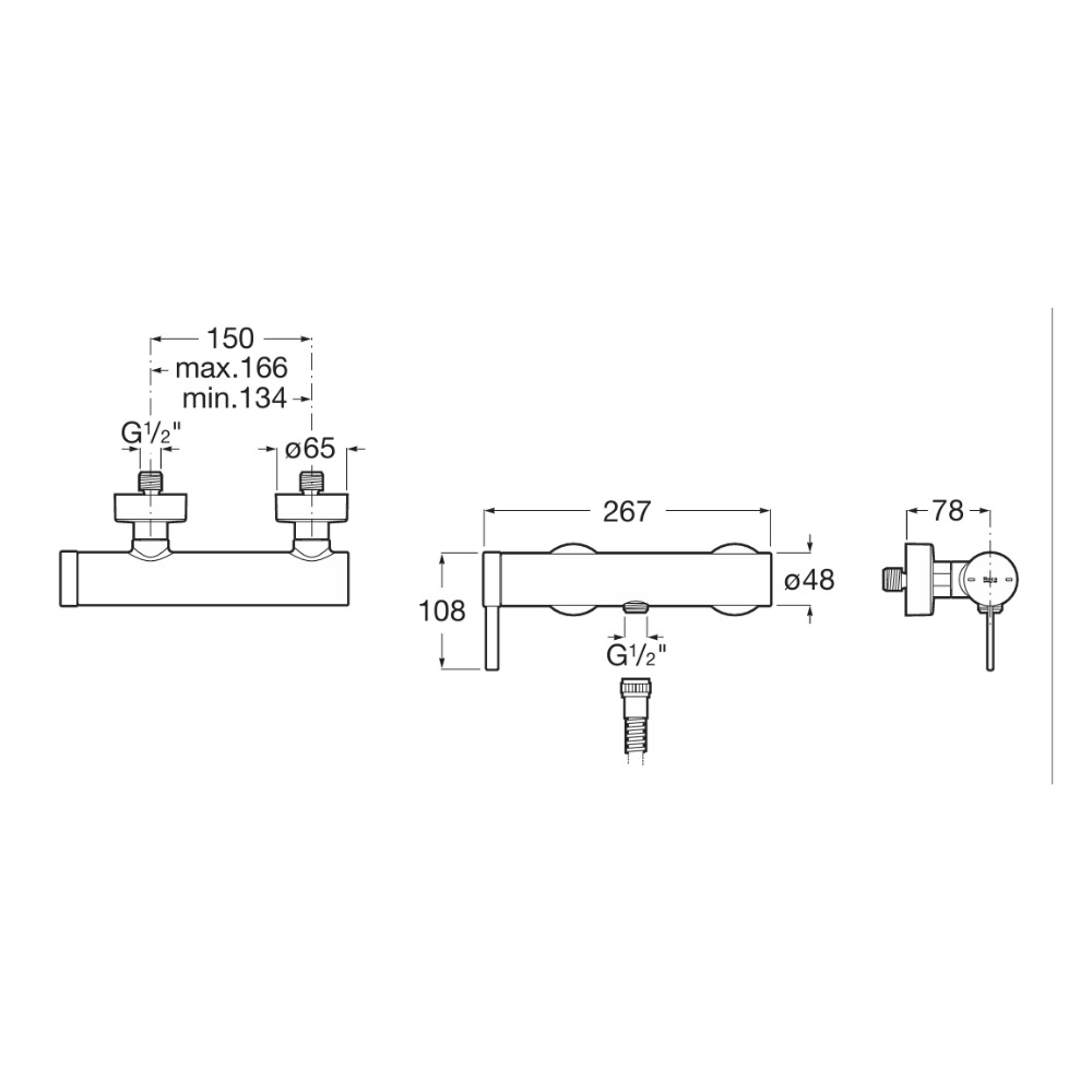 Caractéristiques du mitigeur de douche mural à levier 150 mm, sans ensemble de douche, Roca Ona, noir mat (A5A219ENB0) :