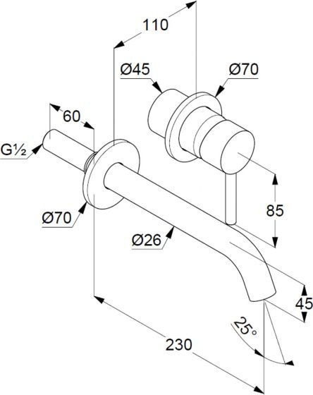 • Mitigeur de lavabo mural 2 trous à encastrer