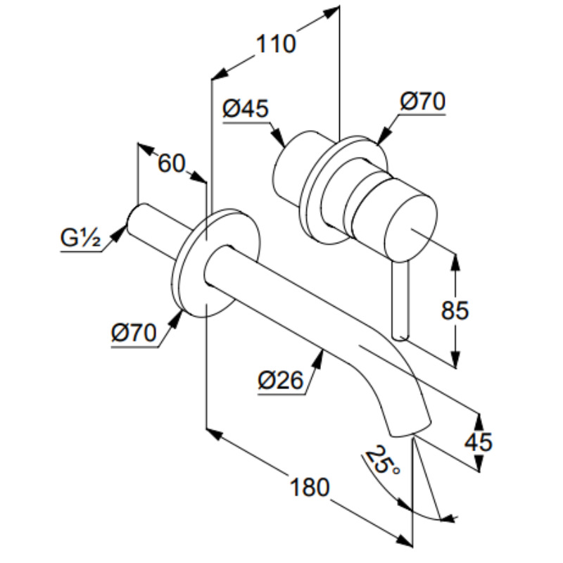 - Mitigeur de lavabo mural 2 trous à encastrer