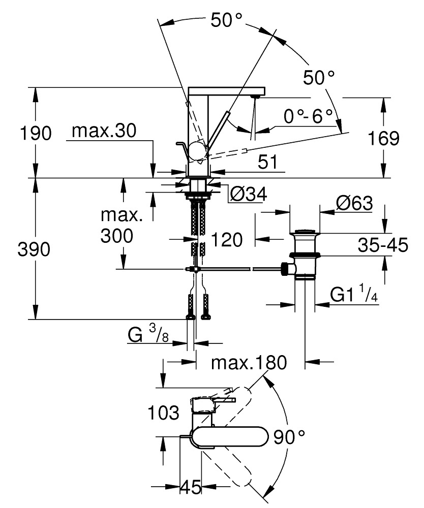 Caractéristiques du mitigeur GROHE PLUS monocommande Lavabo taille M, chromé (23871003):