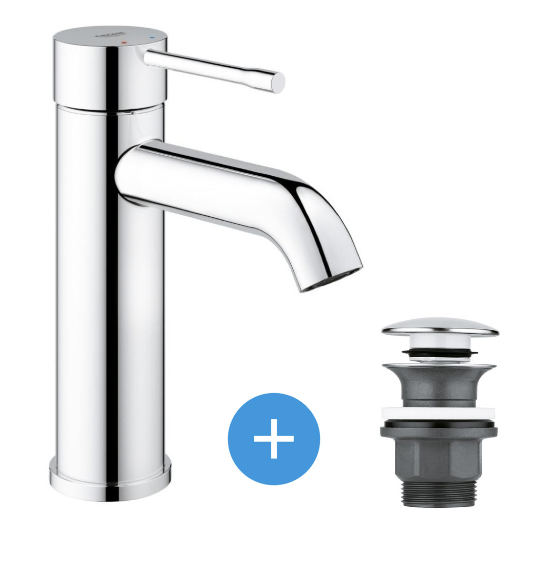 Grohe Essence - set mitigeur de lavabo taille S + Bonde clic clac Grohe pour lavabo avec trop-plein (23590001-CLICCLAC)