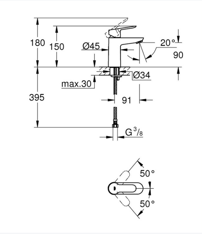 Le set est composé d'un Mitigeur Grohe monocommande, 1/2″ pour lavabo taille S et d'une bonde clic clac Grohe pour lavabo avec trop-plein (MitigeurS1-CLICCLAC) :