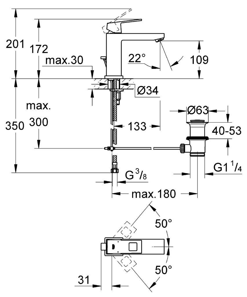 Caractéristiques du Mitigeur monocommande Lavabo Taille M Grohe Eurocube :