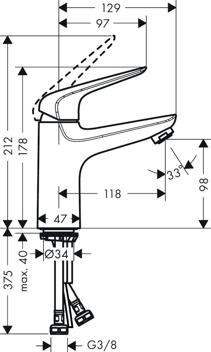 Caractéristiques de Novus Mitigeur de lavabo 100 avec cartouche céramique, sans tirette ni vidage, Chrome, Hansgrohe Novus (71031000) :